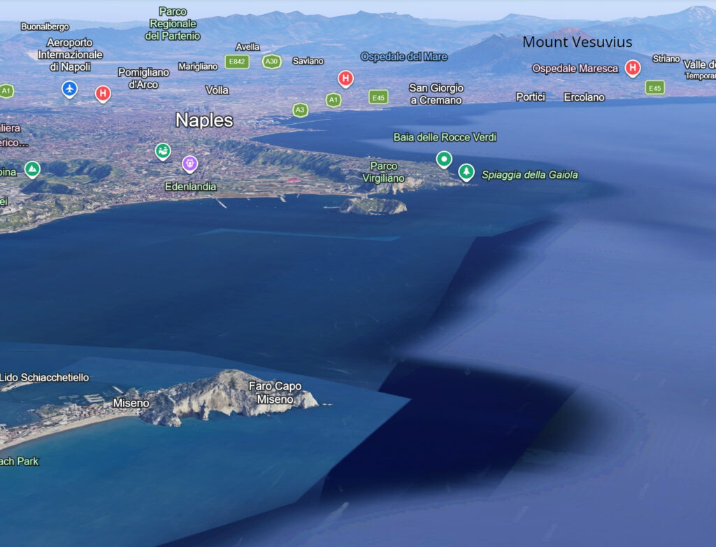 | Vesuvius has erupted many times in the past, including famously in AD 79, when it destroyed Pompeii and other nearby Roman cities. In the 20th century, it erupted in 1906, 1929, and 1944. As of mid-2024, It has not erupted in the 80 years since 1944. —DMT |